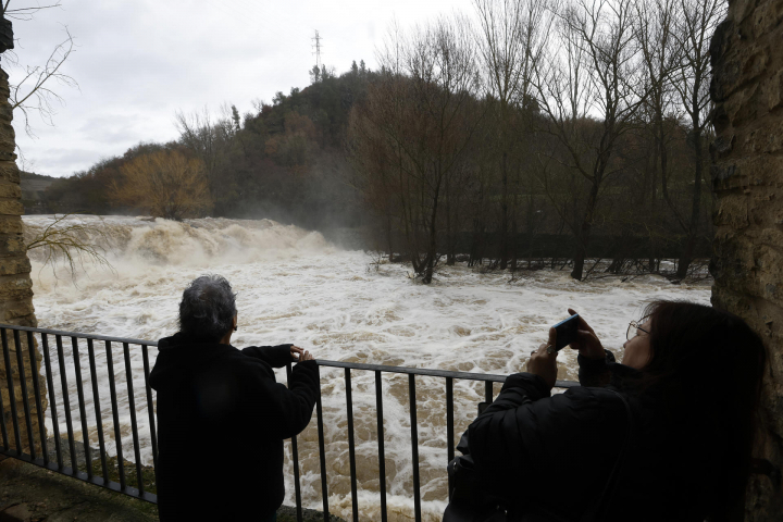El agua añadida a los ríos por un deshielo acelerado a causa del ascenso térmico de estos días con valores por encima de lo normal para la época, está aumentando la presión de los cauces, tras las lluvias intensas de estos días precedidos de sucesivas jornadas de nieve en muchas zonas.