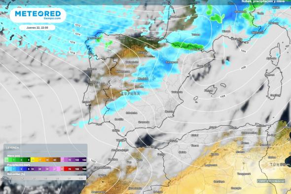 El frente avanzará dejando las precipitaciones más cuantiosas en Galicia, tal y como indica Meteored. Y, una vez pase, es cuando llegará el aire polar marítimo, que provocará cotas de nieve de entre 700 y 900 metros en el noroeste y entre 800 y 1.000 metros en el Sistema Central y en la Ibérica.