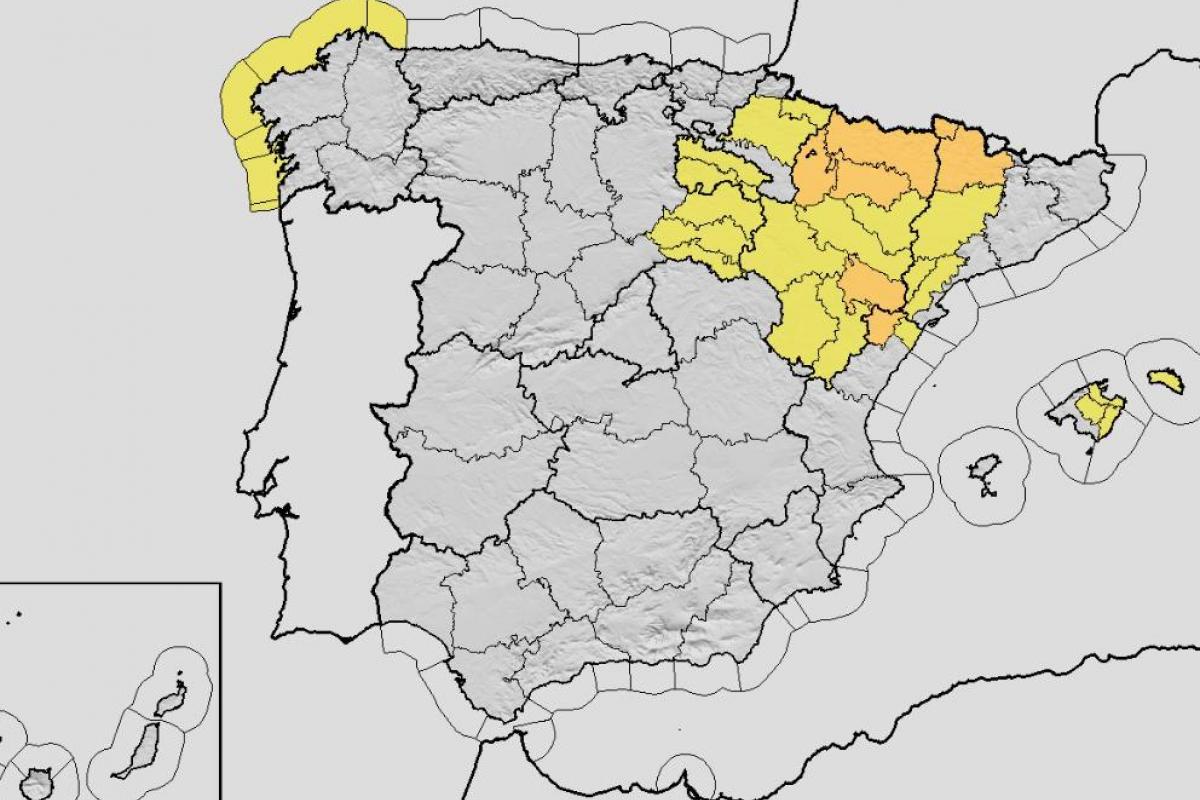 Estas serán más débiles en el Cantábrico, mientras que su potencia podría incrementarse severamente en la zona de los Pirineos, donde podrían producirse tormentas y acumulaciones importantes con el paso de las horas.