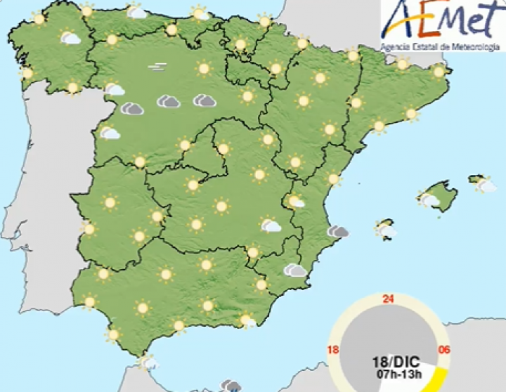 Por otro lado aseguran que las temperaturas no aumentarán aunque la niebla vaya desapareciendo, y los valores seguirán siendo normales para la época y con numerosos puntos del centro y sur peninsular que podrían alcanzar los -3ºC.