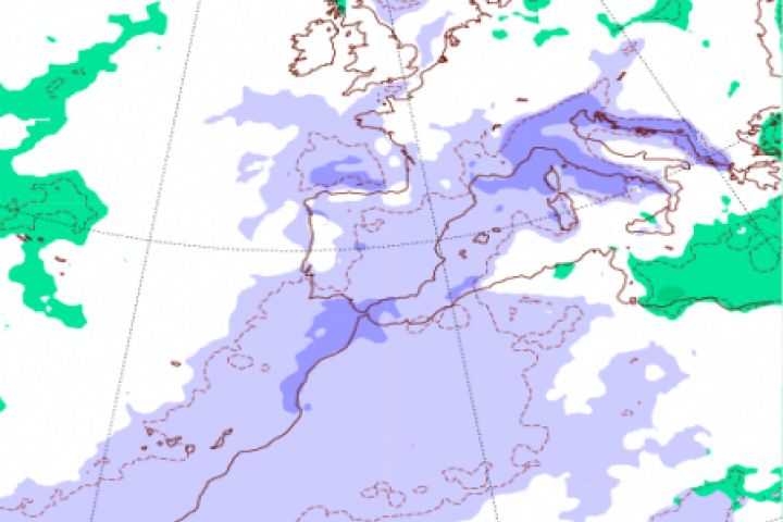 Por su parte, en el resto de la península, mucho más azuladas, las precipitaciones serán inferiores a las que deberían producirse durante estos días. De hecho, en zonas de Castilla Y León, esta diferencia será aún mayor con respecto a los últimos 20 años, de acuerdo con el modelo de predicción del Centro Europeo (EPS).