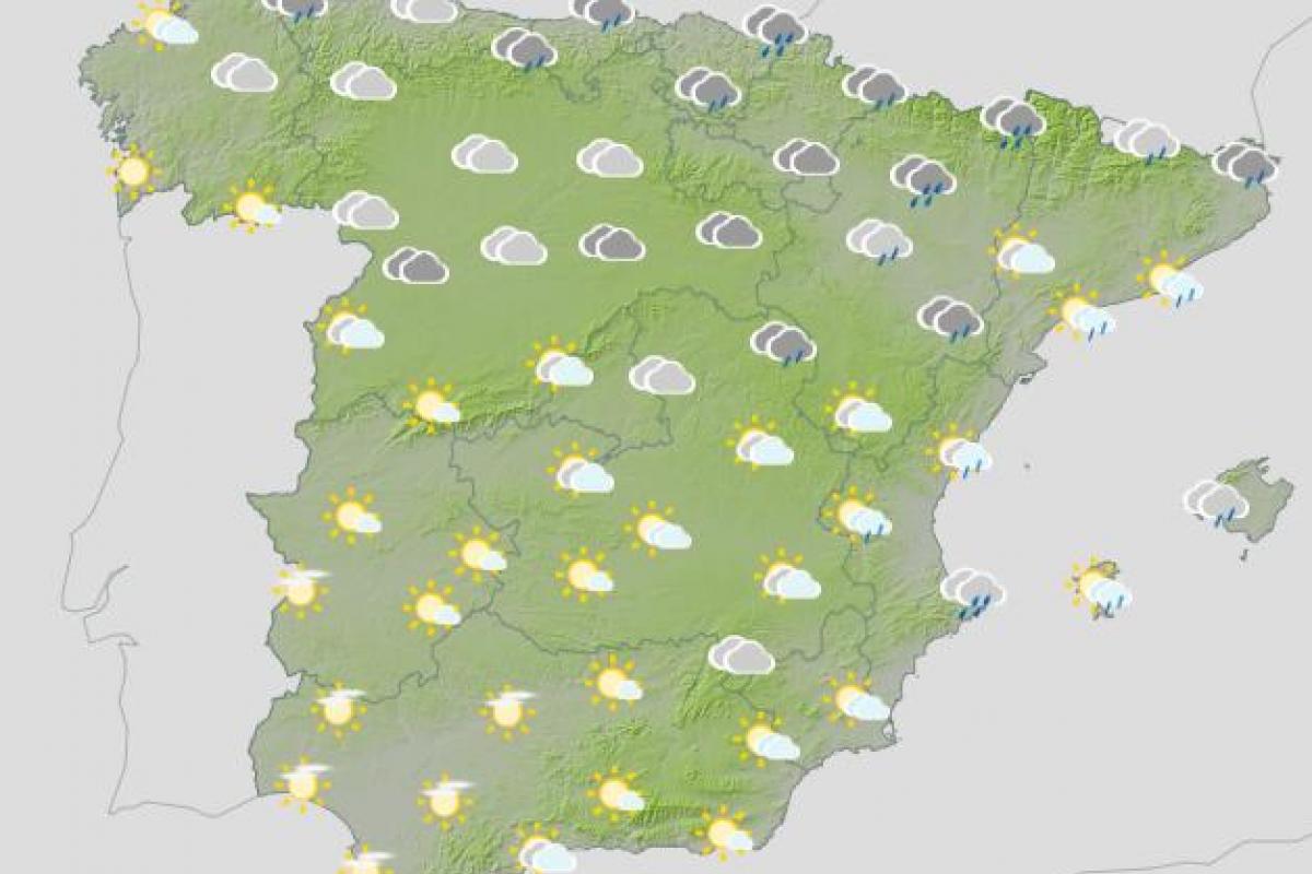 "Recorrerá el norte Peninsular, dejando un predominio de cielos nubosos o cubiertos en el tercio norte y precipitaciones débiles afectando al área cantábrica, norte de la Ibérica y Pirineos, tendiendo a cesar y a abrirse claros por el noroeste", han expuesto.