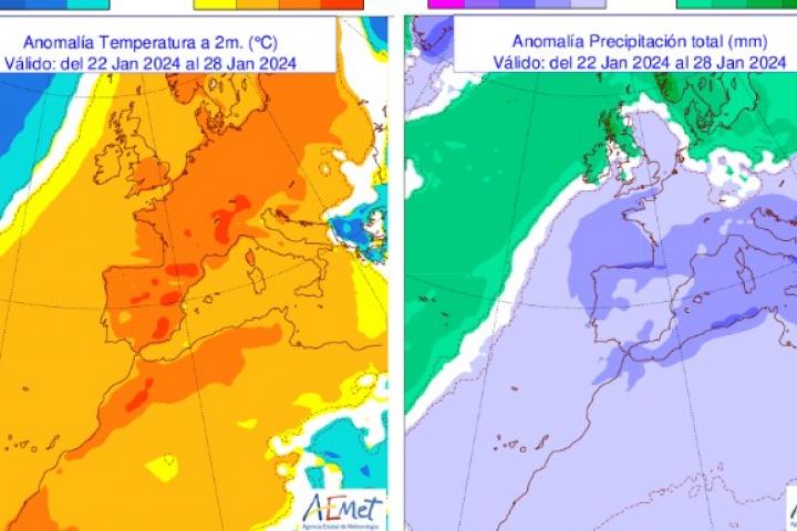 Este 'muro' marcará tres claves, una de ellas especialmente grave en estos momentos. Es el caso de la sequía, frente a lo que la agencia dibuja un periodo próximo sin lluvias, salvo las pocas que han caído en el extremo norte a lo largo del lunes.