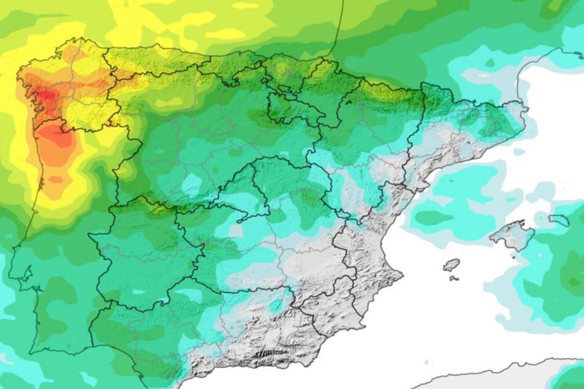 Los frentes asociados a Aitor han entrado este miércoles por el extremo noroeste peninsular y área cantábrica. Las precipitaciones serán localmente fuertes y persistentes en gran parte de Galicia, especialmente en zonas montañosas del interior occidental de la comunidad, donde podrán venir acompañadas de tormenta.