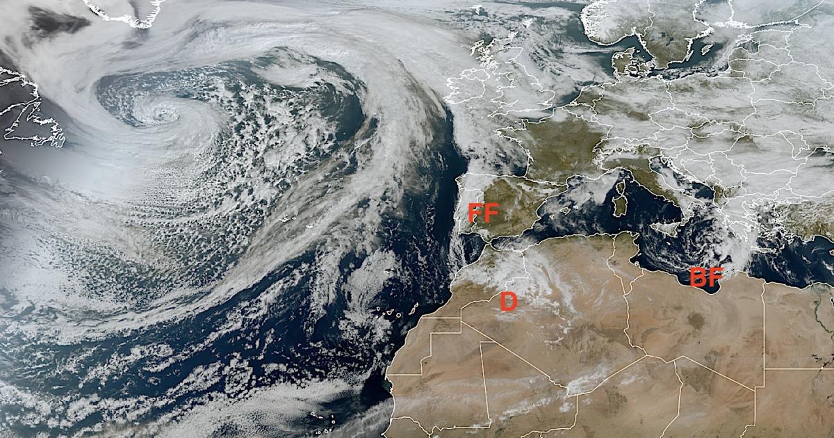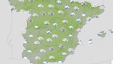 Este martes, la llegada de un frente atlántico dejará cielos cubiertos acompañados de precipitaciones en el tercio oeste peninsular, intervalos de nubes medias y altas en el resto de la Península y Baleares, y un aumento generalizado de las temperaturas mínimas.