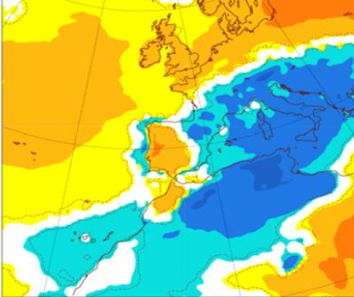 Las temperaturas máximas bajarán en Andalucía y subirán en la mitad norte y Baleares, "con ascensos localmente notables de las máximas en la Cantábrica y la Ibérica oriental". Las mínimas descienden también en general, menos en el sudoeste de Andalucía, donde van a subir. Se vuelven a esperar "heladas débiles en Pirineos y, aisladamente, en la Ibérica norte".