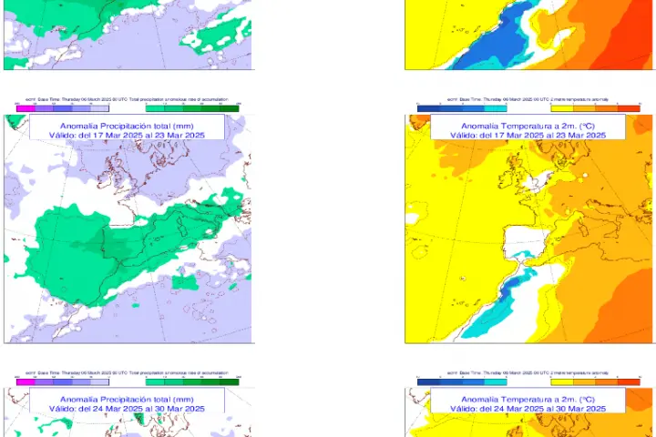 Finalmente, la última semana del mes, del 24 al 30 de marzo, trae consigo aún más incertidumbre. Aunque es posible que haya un cambio en el patrón meteorológico, la previsión apunta a que las temperaturas podrían superar lo habitual, especialmente en la mitad norte del país. Las lluvias, sin embargo, no presentan una tendencia clara.