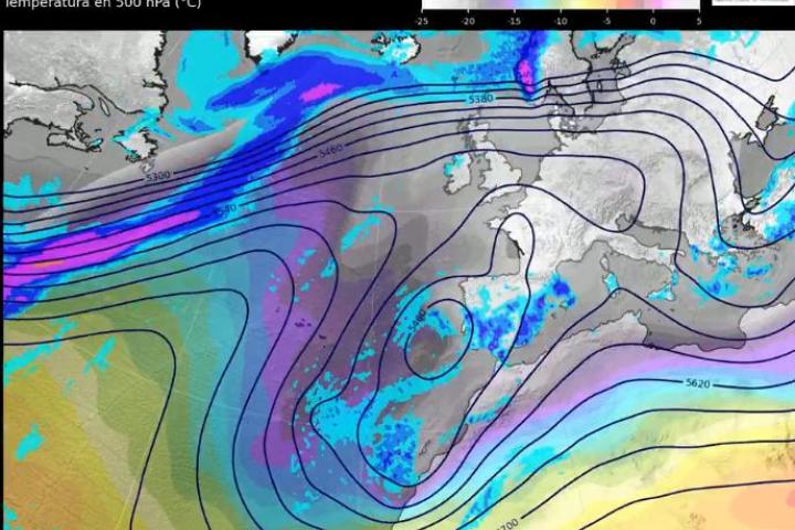 Los chubascos intensos continuarán en el sureste de la península y las islas Pitiusas, extendiéndose en la tarde hacia el Estrecho y la zona occidental de Andalucía. La llegada de una masa de aire polar provocará una bajada rápida de la cota de nieve, que descenderá hasta los 700-1000 metros en la mitad norte de la península. Las nevadas afectarán principalmente a los sistemas Ibérico y Central, los Pirineos y la cordillera Cantábrica.