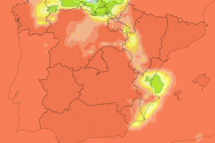 Las temperaturas máximas, por su parte, ascenderán en Galicia y en la mitad norte del área mediterránea peninsular, con descensos en el resto de la mitad oriental peninsular, Baleares y Melilla, sin cambios en Canarias.