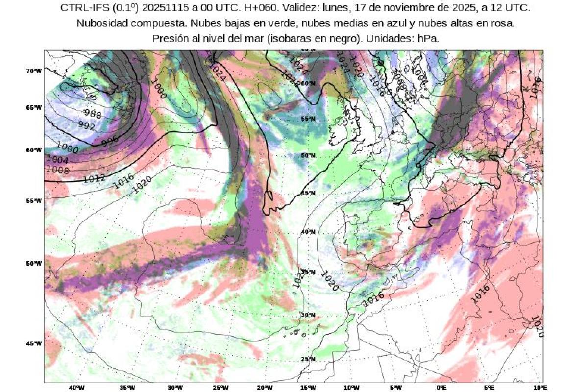 El viento soplará débil en Canarias, donde rolará a norte moderado, mientras que en Galicia y Cantábrico será de componente sur, tendiendo a este en el litoral cantábrico. En el resto del país predominarán los vientos del oeste y suroeste, más moderados en áreas abiertas y litorales.