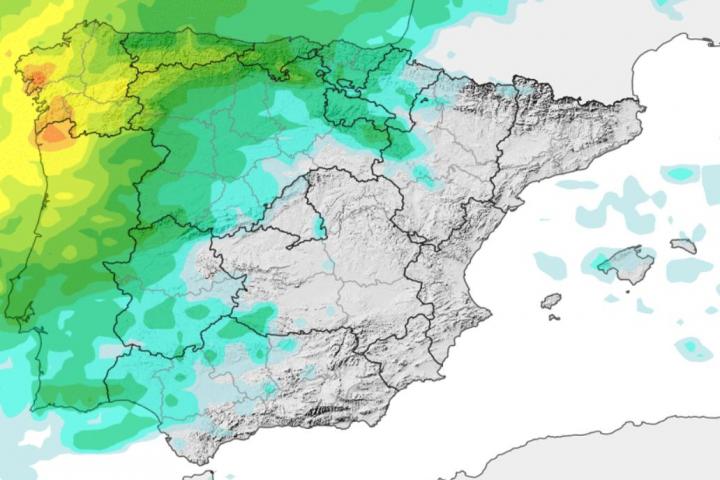Picazo ha señalado que el frente que llegará el miércoles "dejará gran parte de su precipitación en Galicia y zonas próximas". La borrasca continuará avanzando hacia el Mediterráneo, "dejando precipitaciones puntuales en otras áreas del norte, así como del centro e incluso del sur peninsular". "Serán menos probables en el este, donde el frente llegará ya más diluido", ha explicado.