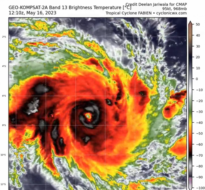 El ciclón Fabián, Fabien en inglés, está acechando la zona sur del océano Índico. Y, aunque parezca que es algo habitual, Mario Picazo advierte de que no hay precedentes de este tipo de fenómenos durante esta época del año.