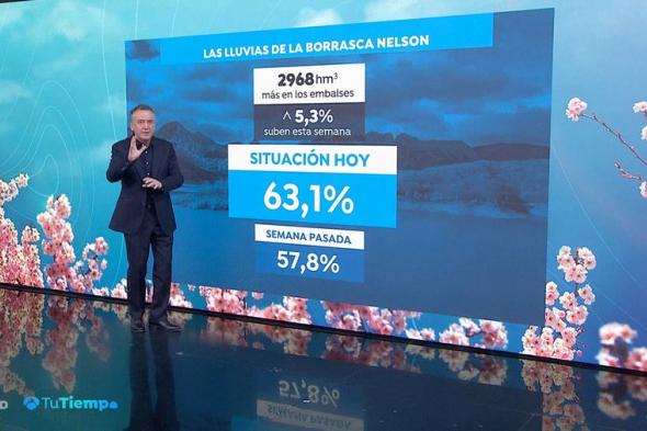 Aunque el presentador hace otra comparación para entender mejor el volumen de agua que ha caído en los últimos días en toda España: "Es como si se hubiera llenado desde 0 y hasta casi el tope el mayor embalse de España, el de La Serena". Y eso supone un incremento del agua embalsada del 5,3% en una semana, o lo que es lo mismo, la mayor subida de lo que llevamos de año.