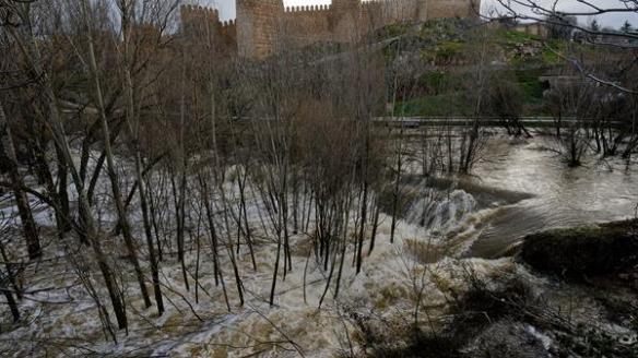 Este río, que en la madrugada del viernes se desbordó y, junto al Chico, inundó buena parte de la zona sur de la capital abulense, permanece con avisos hidrológicos de distinto nivel, en diversos tramos del cauce, desde el pasado 8 de marzo, cuando se produjeron las primeras inundaciones. Por ello, la CHD ha incrementado la vigilancia, tanto en el propio cauce, como en la presa de Las Cogotas, cuya 'cola' se encuentra cerca del embalse de Fuentes Claras, que sigue desaguando en la capital.