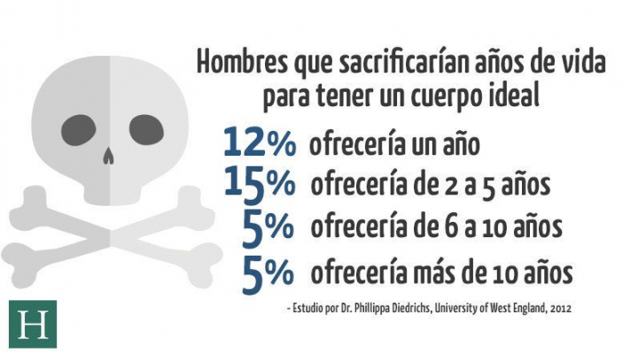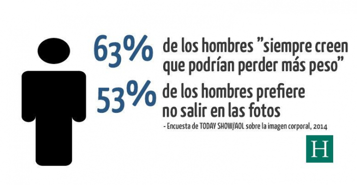 A casi la mitad de los hombres no les gusta ser fotografiados ni vistos siquiera en bañador, según una encuesta del año pasado de NBC Today Show/AOL sobre la imagen corporal. Un estudio de la University of the West of England, en Bristol, descubrió que la mayoría de los hombres pensaba que alguna parte de su cuerpo no era lo suficientemente musculosa, y un número mayor de hombres que de mujeres sacrificaría al menos un año de su vida a cambio de un cuerpo perfecto.
