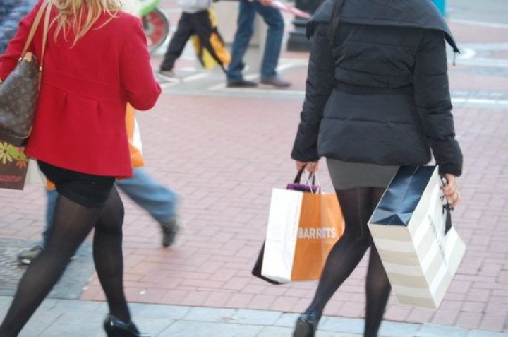 Dos turistas de compras en el centro de Dublín. Foto: VERÓNICA ZUMALACÁRREGUI.