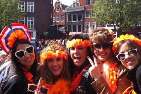Mis amigas y yo celebrando Queen's day en Ámsterdam.