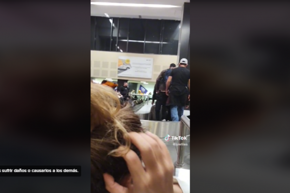 En el vídeo compartido por @juwliies, en su cuenta de TikTok, se puede apreciar como, algunos de los viajeros, hartos de esperar a que aparecieran sus equipajes y objetos personales por las cintas del aeropuerto -que en esos momentos permanecían paradas por algún tipo de fallo- toman la decisión de introducirse en las propias cintas.