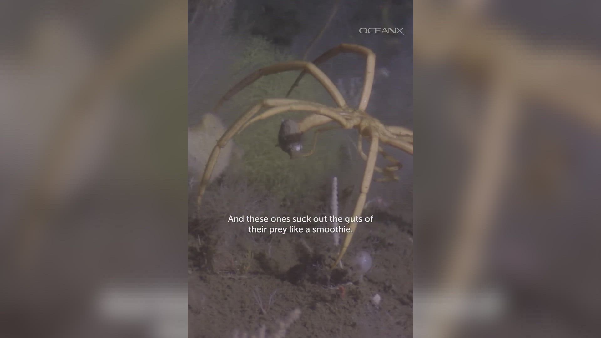 Unos exploradores científicos oceánicos han descubierto un animal que está entre la araña y el cangrejo y que se conoce como araña marina. Para devorar sus presas, succionan su interior como si bebieran a través de una pajita.