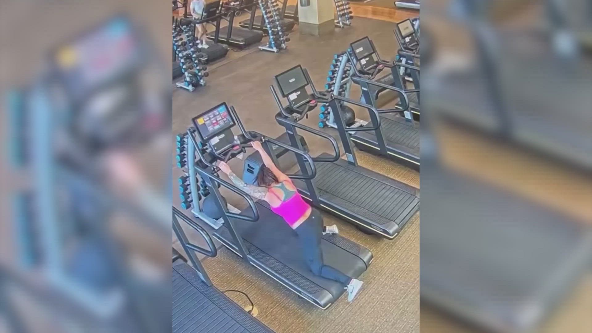 Una mujer de Illinois (EE UU) estaba entrenando en la cinta de correr cuando esta le jugó una mala pasada. La deportista tropieza repentinamente y para evitar una caída se agarra a la máquina, que termina arrastrándola y bajándole las mallas hasta los tobillos.