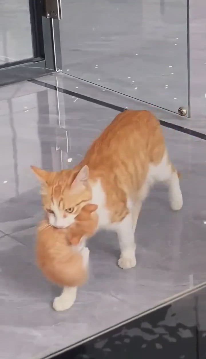 El emocionante coraje de una gata para llevar a su cría donde hay comida