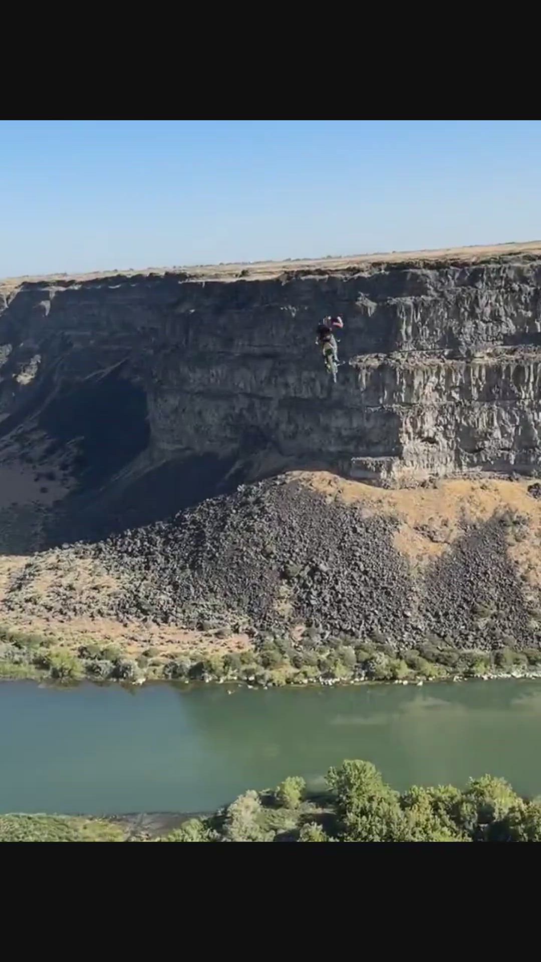 El épico salto en moto al vacío para el utiliza dos paracaídas