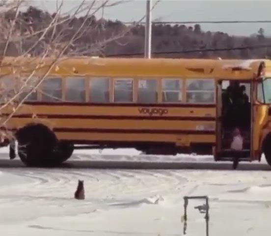 El gato que vigila el autobús hasta que se suben todos los niños: "Les protege"