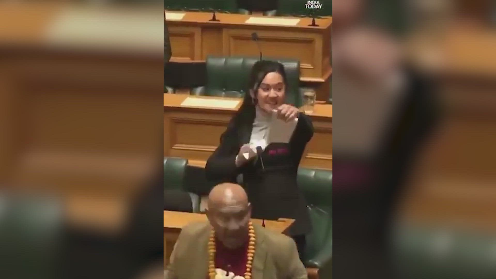 El parlamento de Nueva Zelanda ha vivido este emotivo momento cuando una parlamentaria indígena protestaba contra el recorte de los derechos de los maoríes. Y lo ha hecho a través de una emocionante 'haka' que desde luego deja sin aliento.