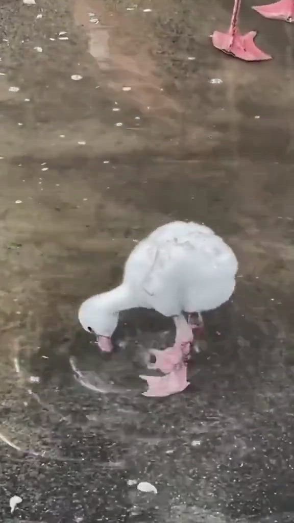 Un pequeño bebé flamenco aprende a chapotear en el agua rodeado de otros familiares mucho más grandes y mayores que él. Este vídeo inédito muestra una etapa del crecimiento de estos animales pocas veces vista anteriormente.