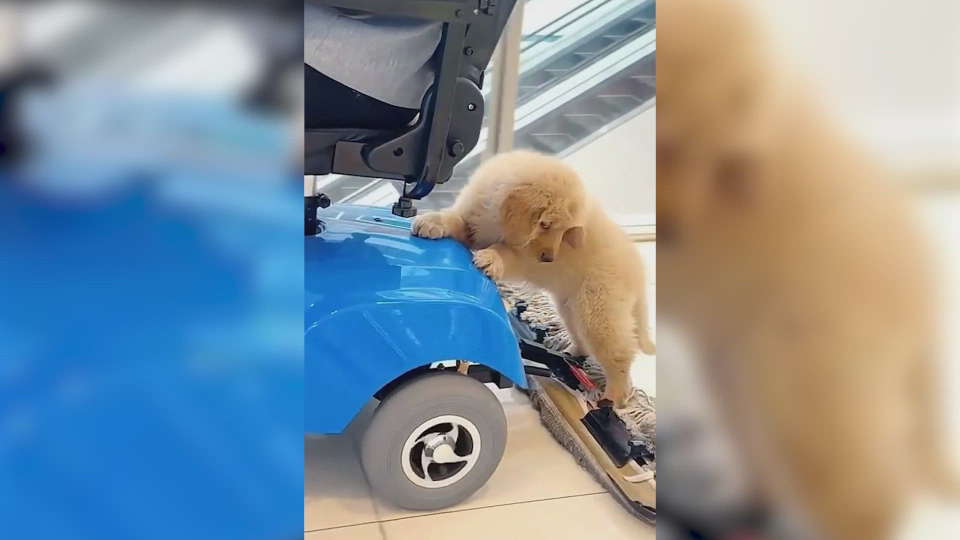 Este cachorro de Golden Retriever se pone patitas a la obra y ayuda a limpiar el centro comercial: le lloverán ofertas