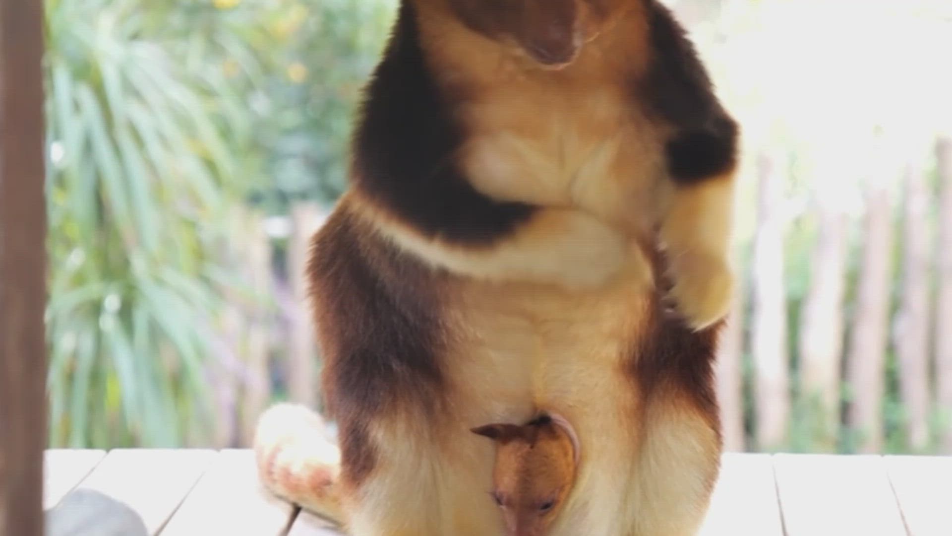 Imposible no derretirse al ver a un canguro salir por primera vez de la bolsa de su madre