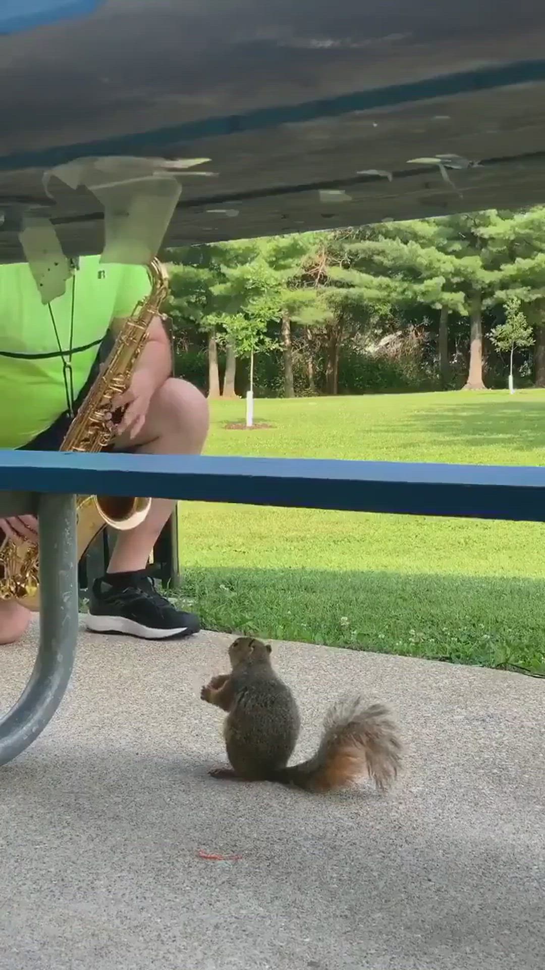 La espectadora más singular del saxofonista que toca en el parque todas las mañanas