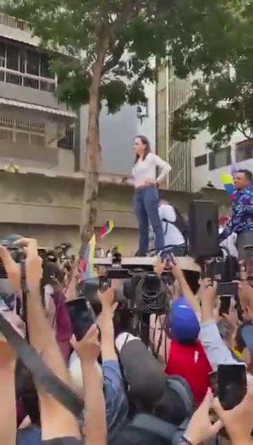 La líder opositora al chavismo se ha mostrado públicamente en una multitudinaria marcha en Caracas y tras hacer un llamamiento a la oposición venezolana un día antes de la previsible toma de posesión de Maduro. "Aquí estoy, con los venezolanos. Gloria al bravo pueblo", ha manifestado Machado en una publicación en sus redes sociales donde ha adjuntado un vídeo de su aparición en la manifestación en Chacao, uno de los municipios del área metropolitana caraqueña, junto al opositor Juan Pablo Guanipa, quien ha llamado a "vencer el miedo".