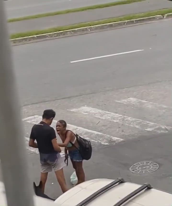 La surrealista escena en la que un hombre torea a un perro mientras sus dueños tienen una discusión en plena calle