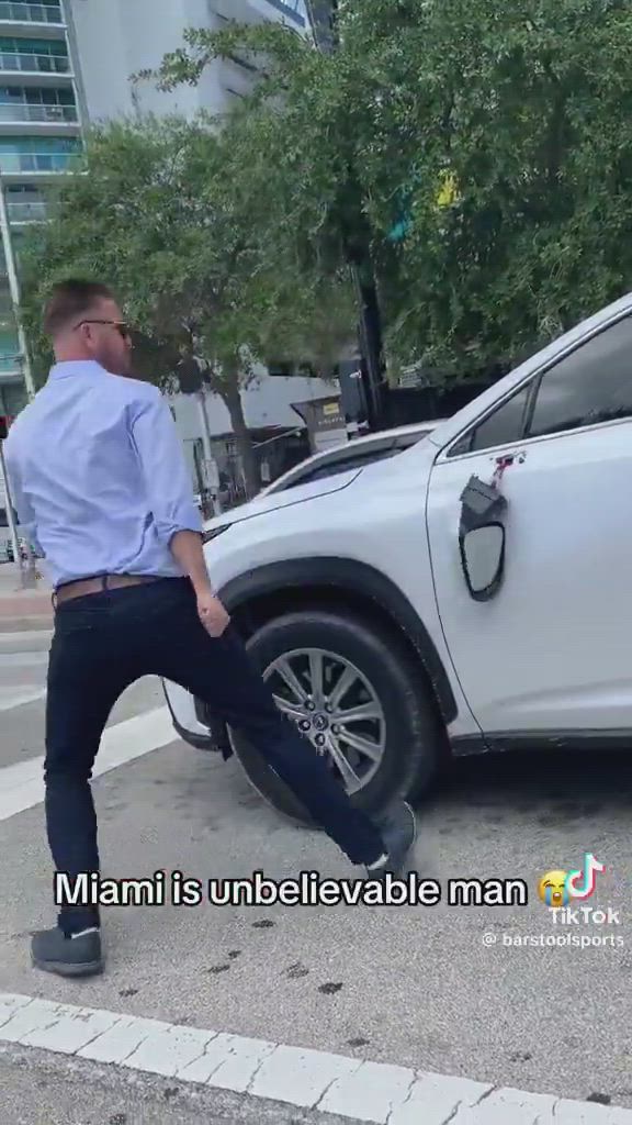 La surrealista escena en plena calle que termina con un coche roto: "Miami es increíble"