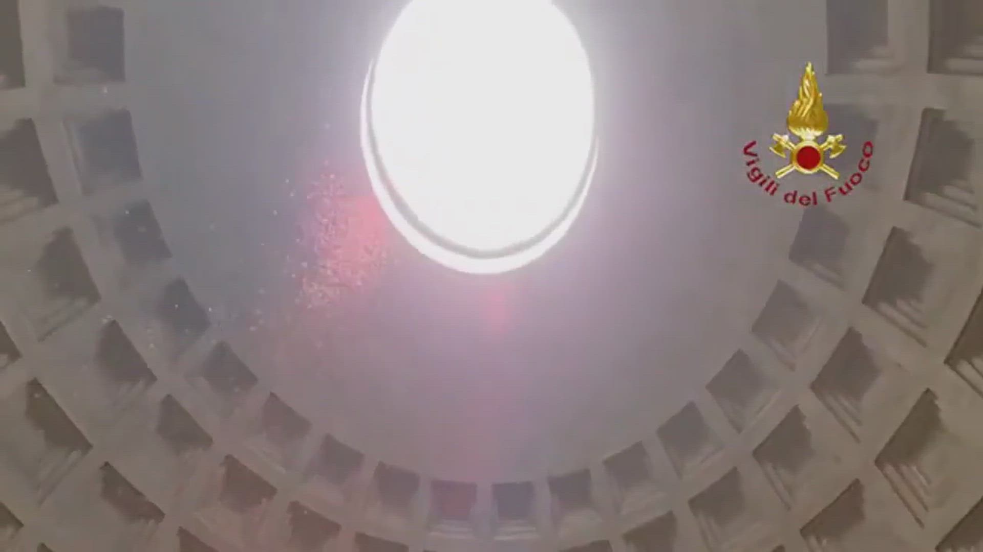 Las impresionantes imágenes de miles de pétalos de rosa cayendo al Panteón de Roma durante la celebración de Pentecostés