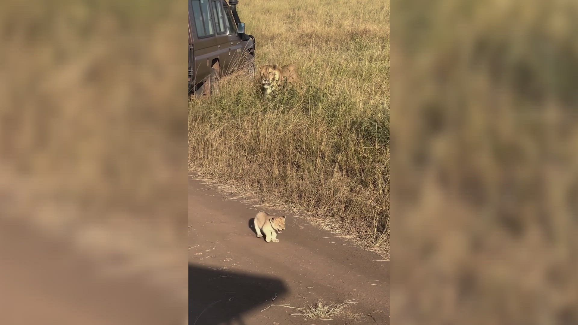 Unos turistas se adentran en el Parque Nacional Serengueti, en Tanzania, y logran grabar algo muy poco habitual: aparece una pequeñísima cría de león acompañada de su madre. Es una imagen tan tierna que se agotan los likes de los usuarios de redes sociales.