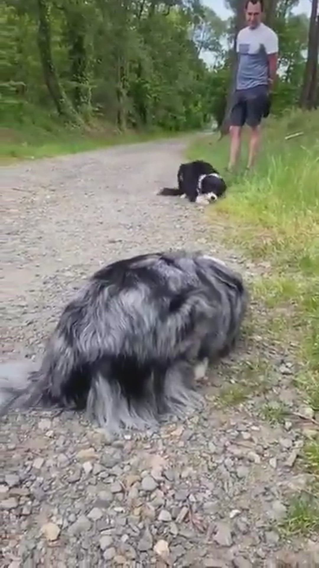 Un Border Collie y un Pastor Australiano se conocen por primera vez y se mandan estas señales