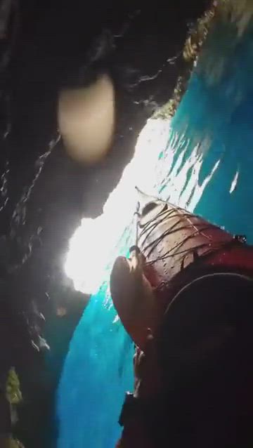 Un joven se queda atrapado en cueva y tiene que volcar su kayak para huir