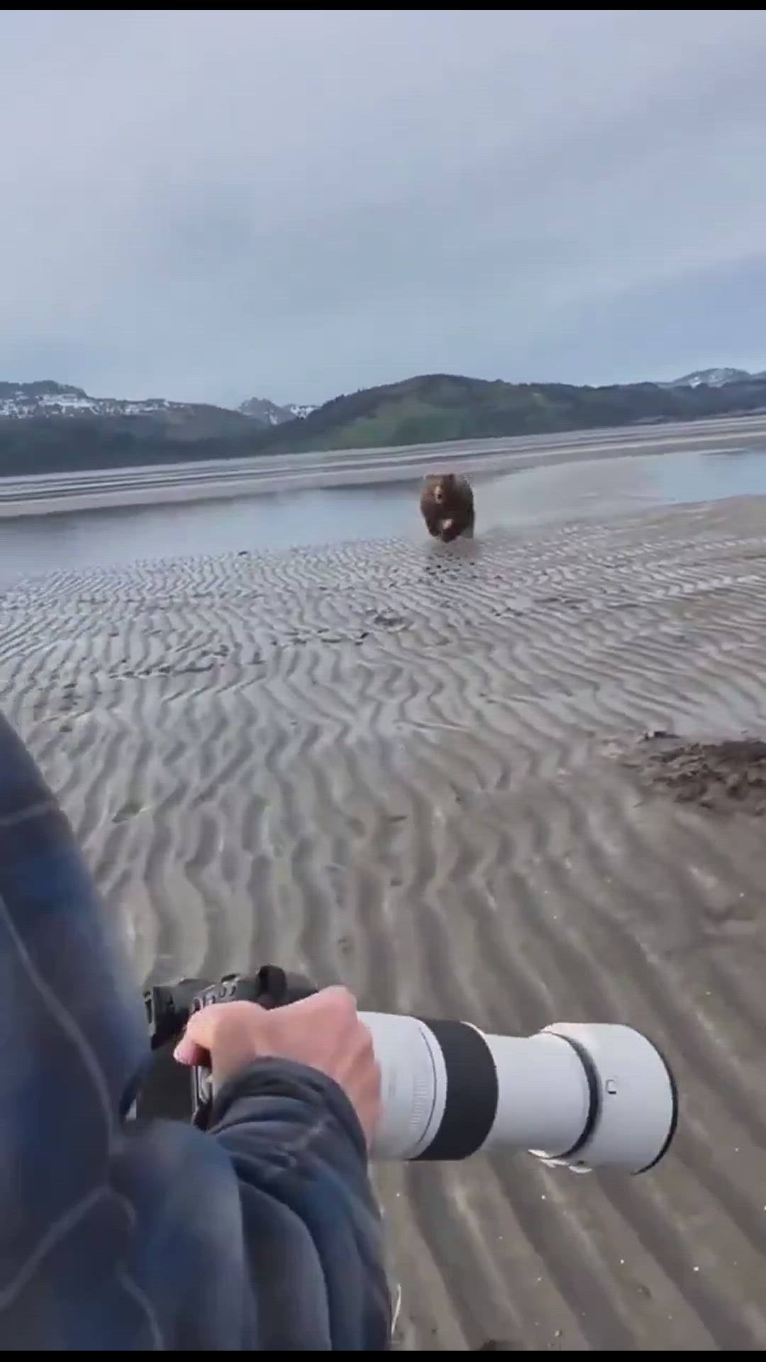 Un oso le da el susto de su vida y la técnica que usa para ahuyentarlo es para tomar nota