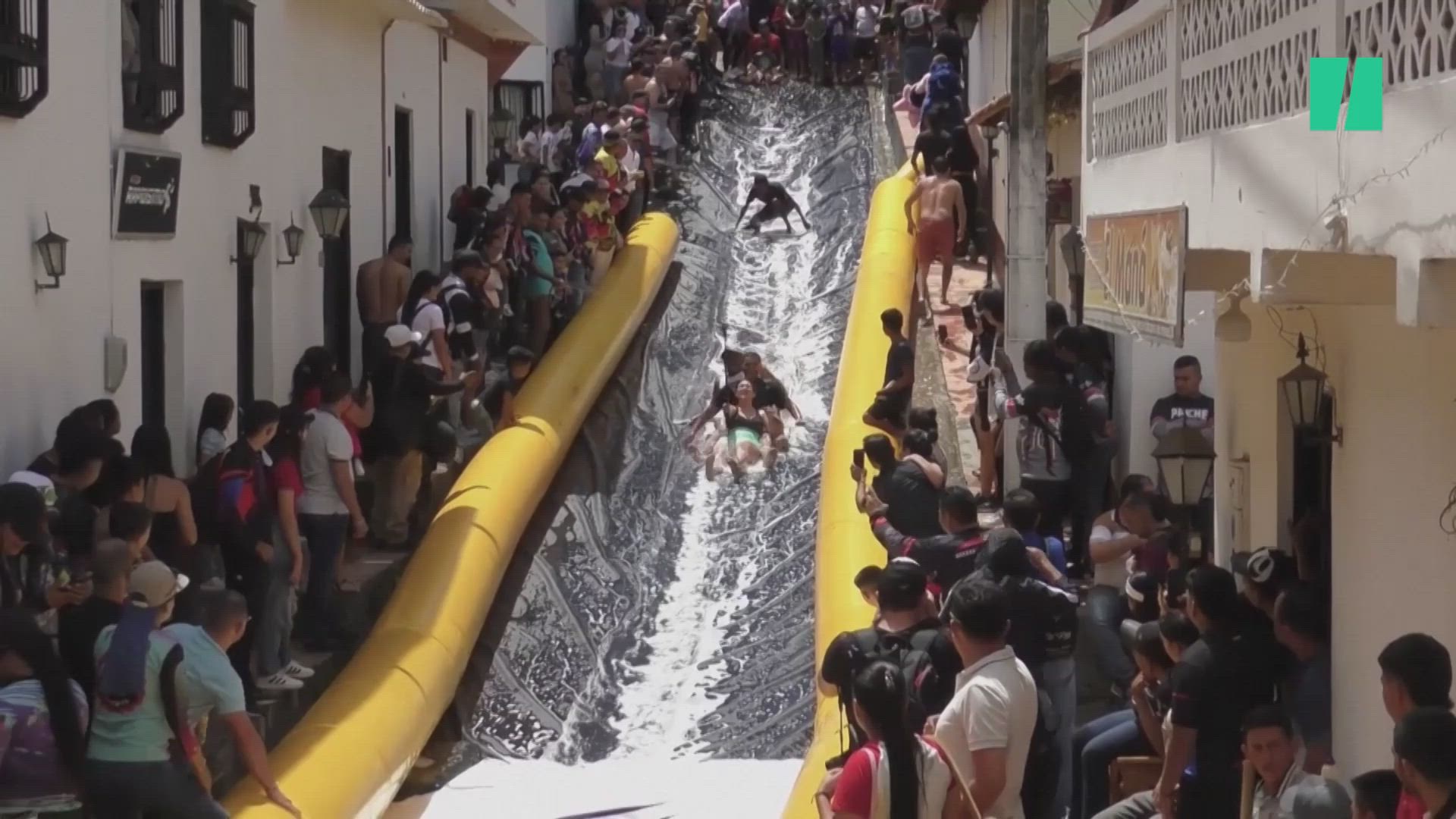 Un pueblecito colombiano convierte su calle principal en un tobogán gigante