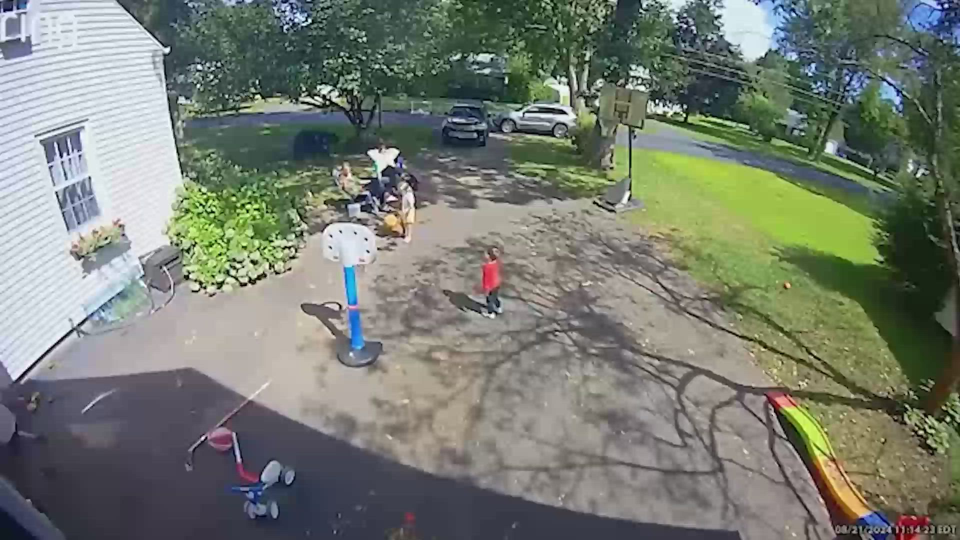 Una familia estadounidense del estado de Connecticut disfrutaba del buen tiempo en el jardín de su casa cuando, de repente, apareció un oso. Una cámara de seguridad logró grabar el momento en el que la familia huye despavorida al ver al animal.