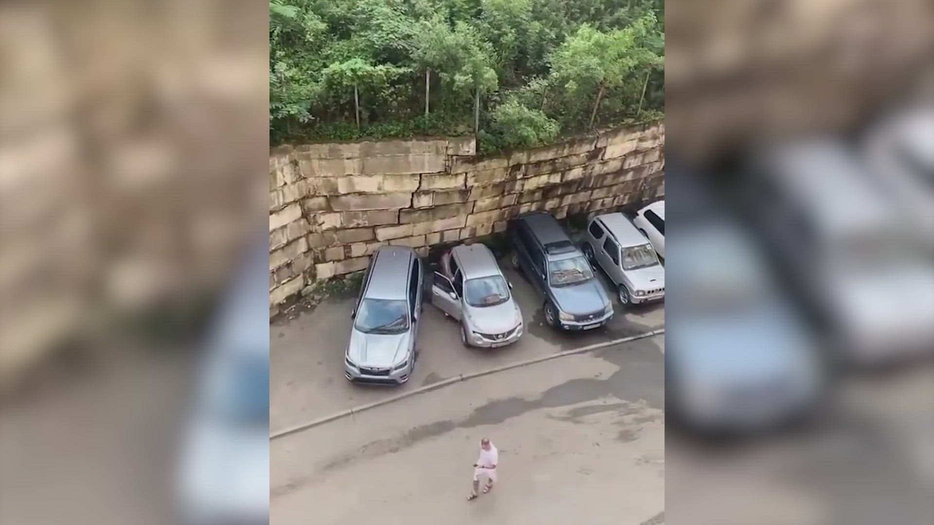 En la ciudad de Vladivostok, Rusia, las fuertes tormentas han provocado el derrumbamiento de un gran terraplén de tierra que estaba protegido por un muro y que ha caído sobre siete vehículos que estaban aparcados. Segundos antes de este desprendimiento, una mujer se dio cuenta de lo que podía pasar y retiró rápidamente su vehículo de allí.