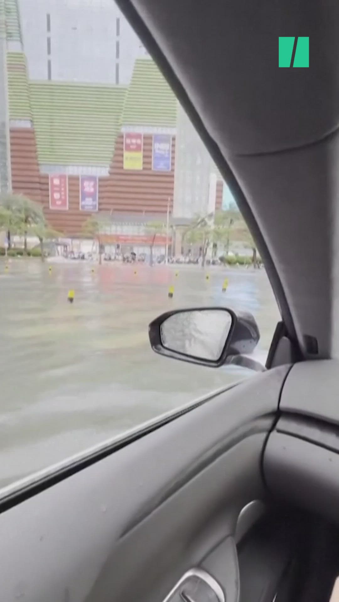 Una persona desafía al tifón Wipha y conduce su coche una carrera inundada en China