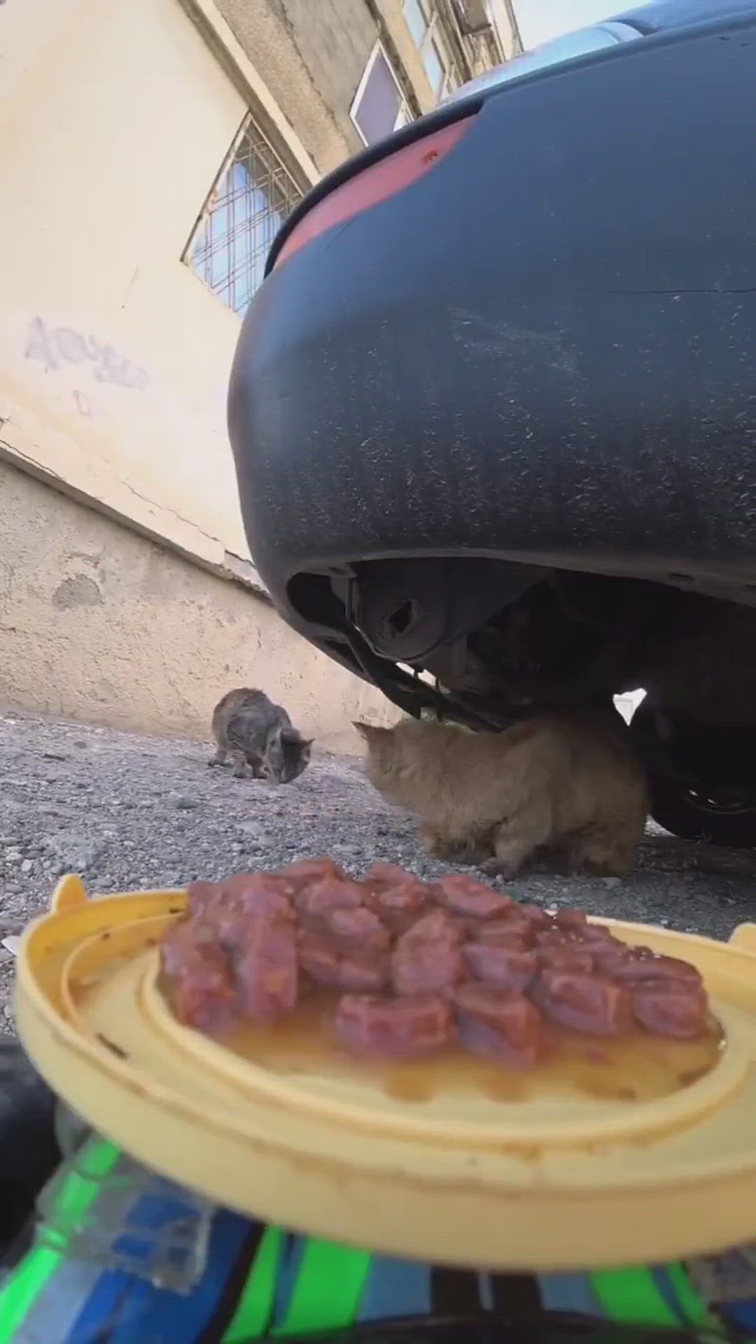 Utiliza su monopatín para darle comida a gatos callejeros y le pone una cámara para ver el resultado