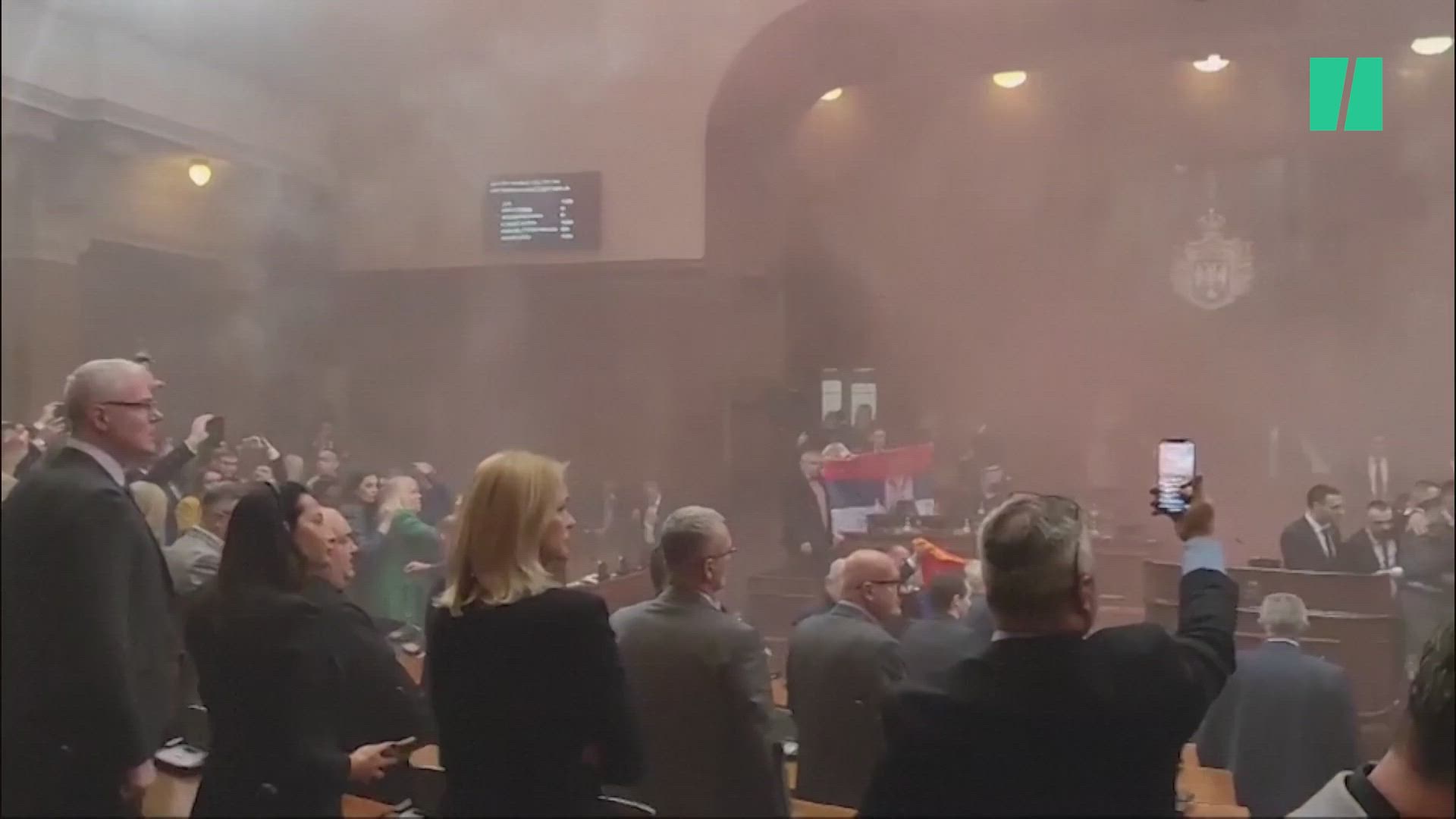 VÍDEO: Momento en el que lanzan gas lacrimógeno en el Parlamento de Serbia