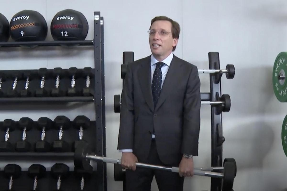 Estas imágenes corresponden a la inauguración del nuevo centro deportivo municipal que abrirá sus puertas este viernes en el número 107 de la calle Bravo Murillo, donde probó la maquinaria e hizo numerosos ejercicios sin quitarse el traje.