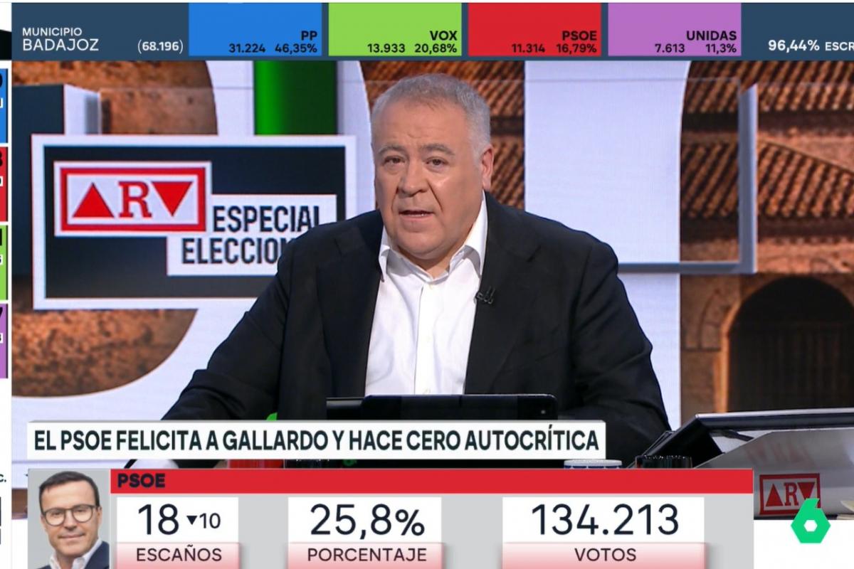 El periodista Antonio García Ferreras, presentador de Al Rojo Vivo, en La Sexta, se ha mostrado durísimo con el secretario general del PSOE extremeño, Miguel Ángel Gallardo, después de que este no aclarase si va a dimitir o no a raíz de que su formación haya perdido 10 escaños en las elecciones autonómicas.