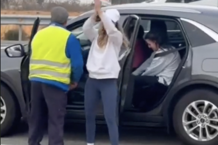 En las imágenes se puede ver a la cantante tocando el claxon como muestra de apoyo a los manifestantes, que exigen mejoras en el sector. Los agricultores le piden que se baje del coche y les acaba diciendo que está con ellos pero que tiene hambre.