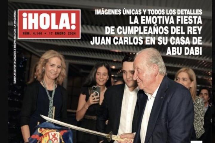 La portada de la revista ¡Hola! de esta semana está dando mucho juego en las redes sociales gracias a la gran foto que lleva: en ella aparece Juan Carlos I rodeado de familiares a punto de cortar una tarta con su propio estandarte el día de su cumpleaños.